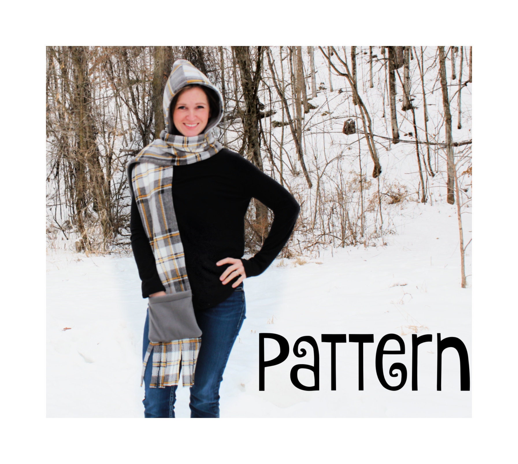 Hooded Scarf Pdf Pattern Hooded Scarf With Pockets Sewing Etsy
